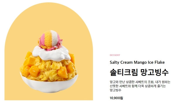 솔티크림 망빙 블라스트는 망고과육이 살아있는 1인 망고빙수라고 생각하시면 되는데요. 솔티크림폼이 가득해서 상큼함에 단 맛을 돋보이게 한다고 합니다.