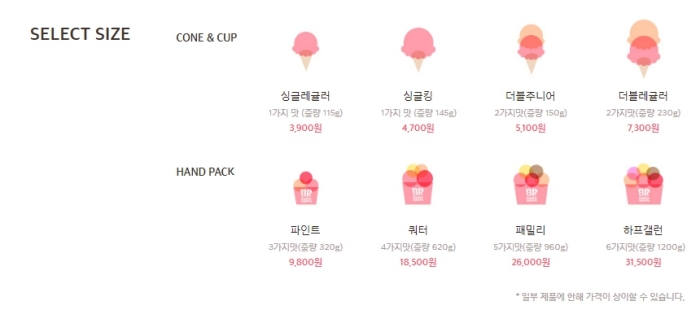 베스킨라빈스 가격 및 아이스크림 맛 종류 순위(2023년 7월 기준)