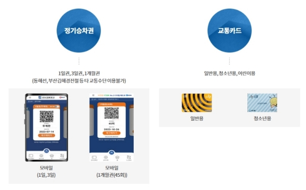 단 버스, 동해선, 부산김해경전철은 이용이 불가합니다.