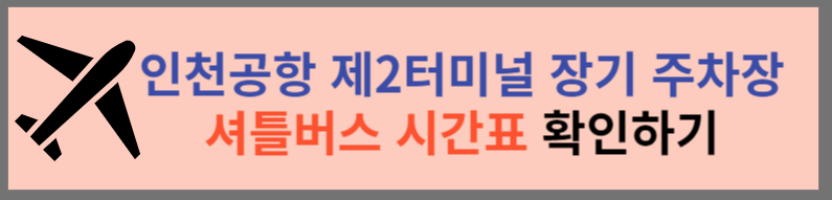 제2터미널 장기주차장에서 터미널로 가는 셔틀버스는 정류장과 시간표가 따로 있는데요. 자세한 정보는 인천공항 홈페이지에서 확인하실 수 있습니다. 공항 가시기 전 꼭 이 시간표를 확인하시기 바랍니다.