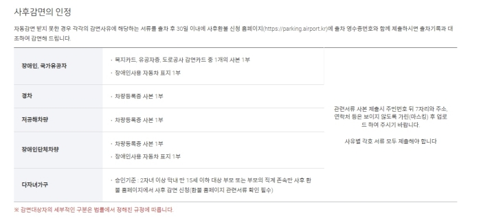 만약 할인 제도를 모르고 현장에서 알게 되셨거나, 여행 후 집에 와서 알게 되신 분은 걱정하지 마세요. 주차요금 사후감면 신청을 하시면 됩니다. 단 출차 후 30일 이내 건만 해당되니 유의하시기 바랍니다.