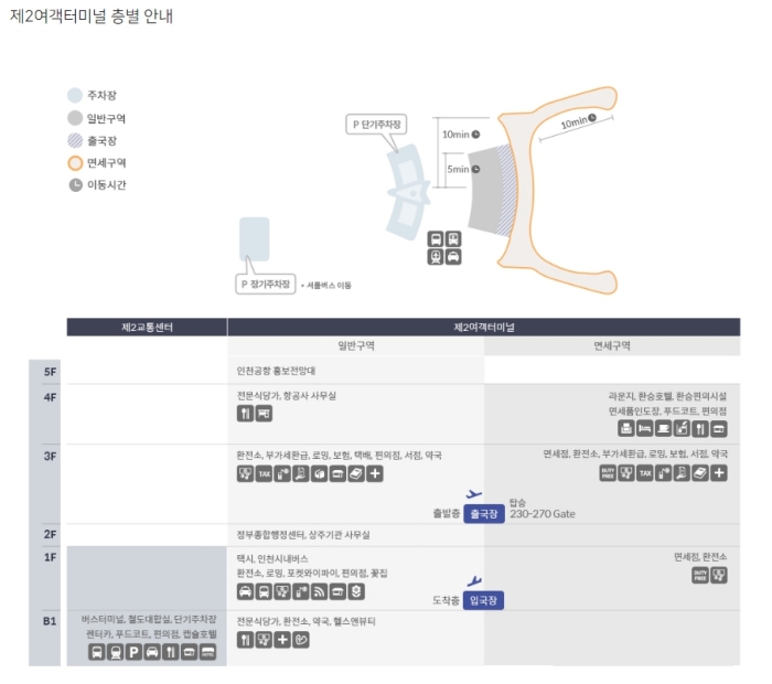 <제2터미널 층별 안내지도>