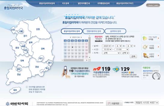 바로 휴일지킴이약국 사이트에 접속하셔서, 내가 사는 지역과 현재 시간대를 검색해 보시면 손쉽게 찾을 수 있습니다.