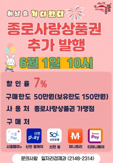 2023년 6월 서울사랑상품권이 추가 발행됩니다. 종로사랑상품권 50억 원 규모, 서울중구사랑상품권 40억 원 규모, 용산사랑상품권 100억 원 규모로 추가 발행 예정입니다.